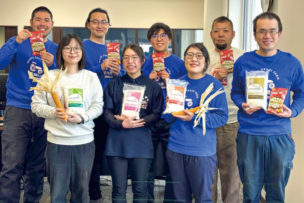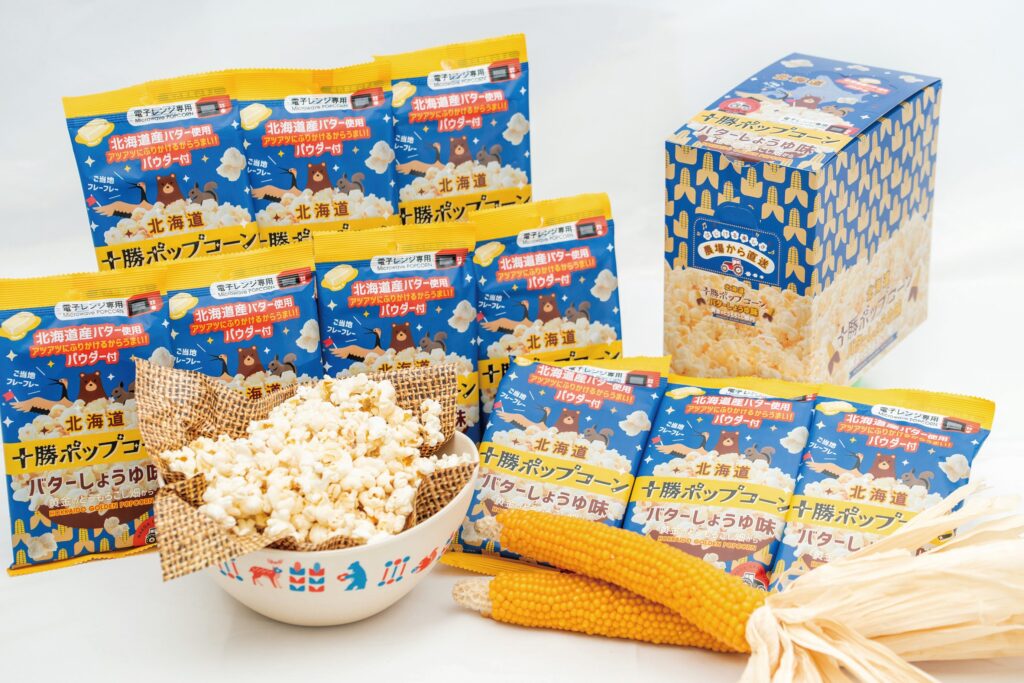 代表的な事例の一つが、国産初の電子レンジ専用ポップコーンの開発という前例のない挑戦だ。「家族経営の農場から通年雇用の組織へと舵を切る上で、課題になっていたのが冬場の仕事でした。そんなときに思い付いたのが、国内産ポップコーンの開発。売上増加と雇用維持、それからお客様も我々も『わくわくする農業』の実現を目指し、挑戦を決めました」。前例がないだけに課題も多く、商品化まで4年の歳月を費やした。そんな苦しい時期についても、「ポップコーンが弾ける前に経営が弾けそうだった」と、ジョークを交えて語る前田社長。その明るさと向上心で組織を支え、2024年には製造数100万袋へ近づき、海外展開を行うまでに。十勝内外に前田農産食品の名を広めるきっかけとなった。