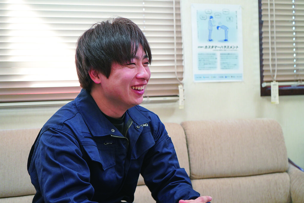 音更町出身。前職は九州で建築系の施工管理。「現場で自ら手を動かしたい」という思いのもと2019年に入社。ベテランの先輩に教えてもらいながら、一人前になるために日々知識と技術を吸収している。